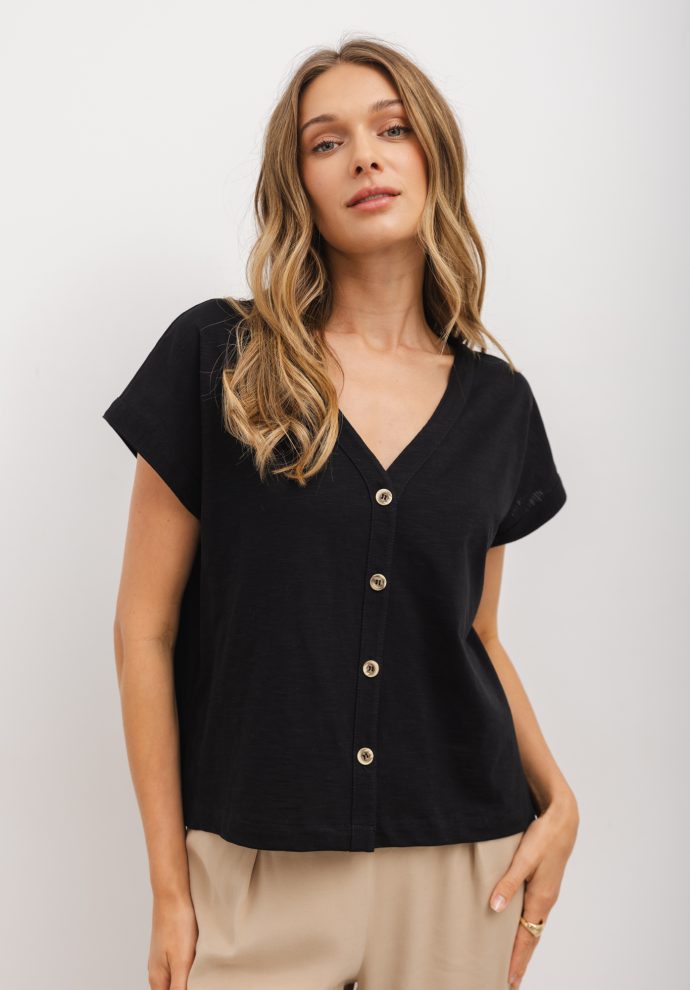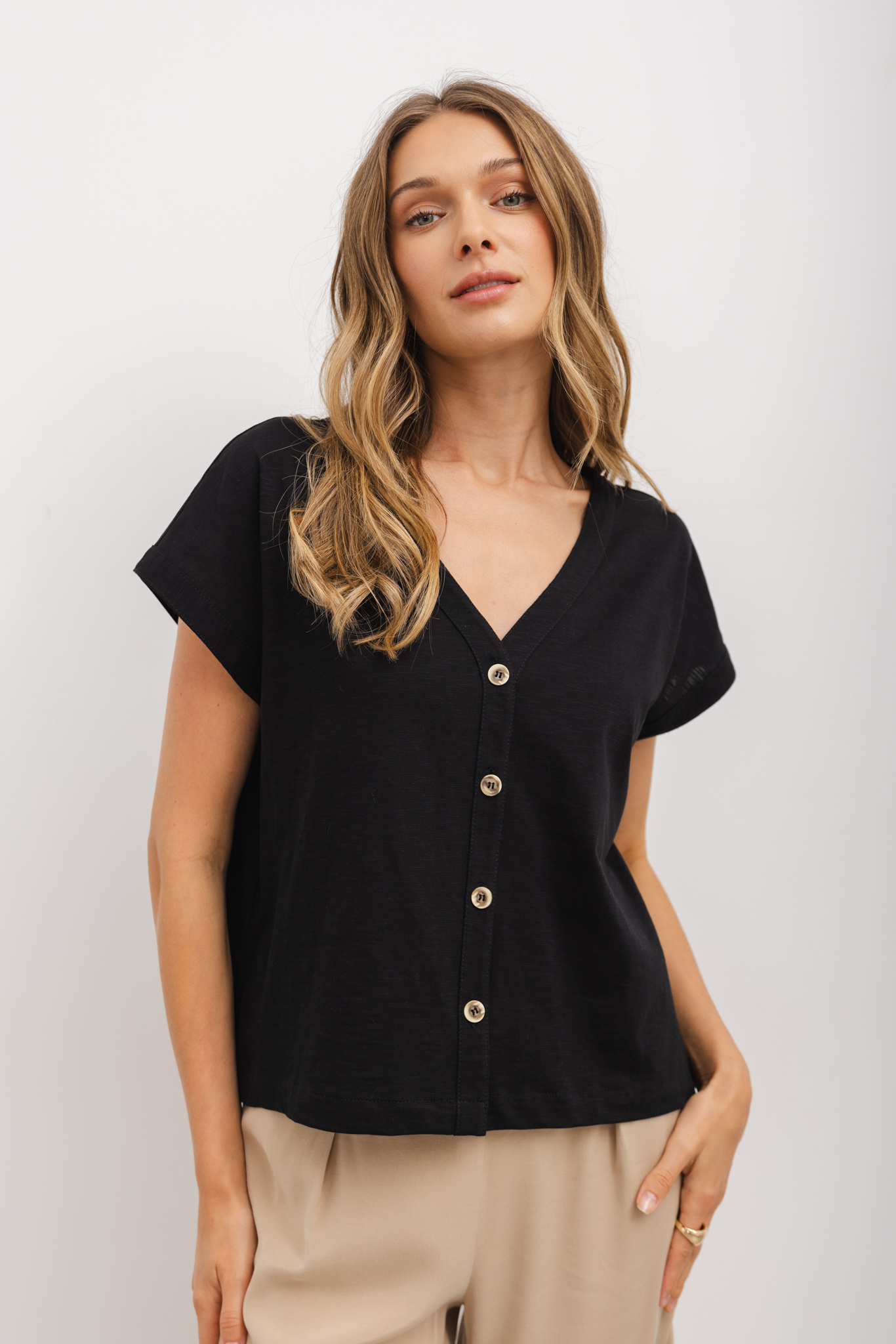 ALISA SHORT-SLEEVE BLOUSE BLACK