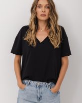 The Bali t-shirt is very versatile and works as a great base for many looks. Pair it with your favourite tight jeans, loose sweatpants or a knee-length skirt. Looks great in any combination.
