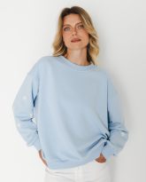A sweatshirt of this cut will perfectly complement urban and sporty styles. Match it with jeans, sneakers and you have a ready-made comfortable style for many hours spent outside the home. The sweatshirt will also look great in a pair of joggers – it is an ideal option for a walk. If you need a sports version – match it with leggings. It will also work well in the summer or on vacation – worn with shorts.