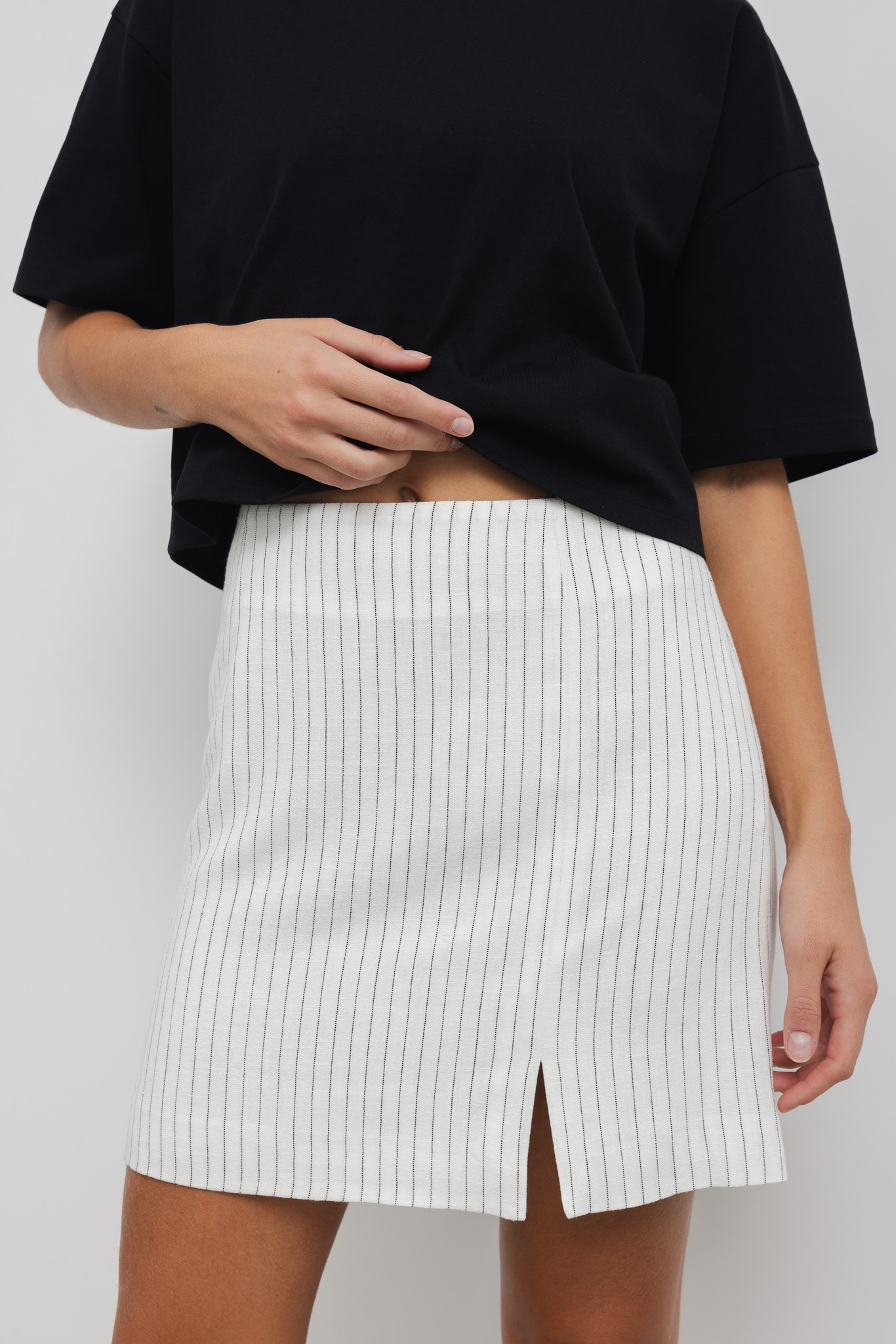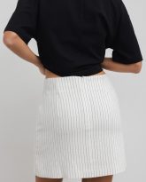 The Boni skirt in warm cream colour with black longitudinal stripes is a sophisticated choice for women who desire sporty elegance.