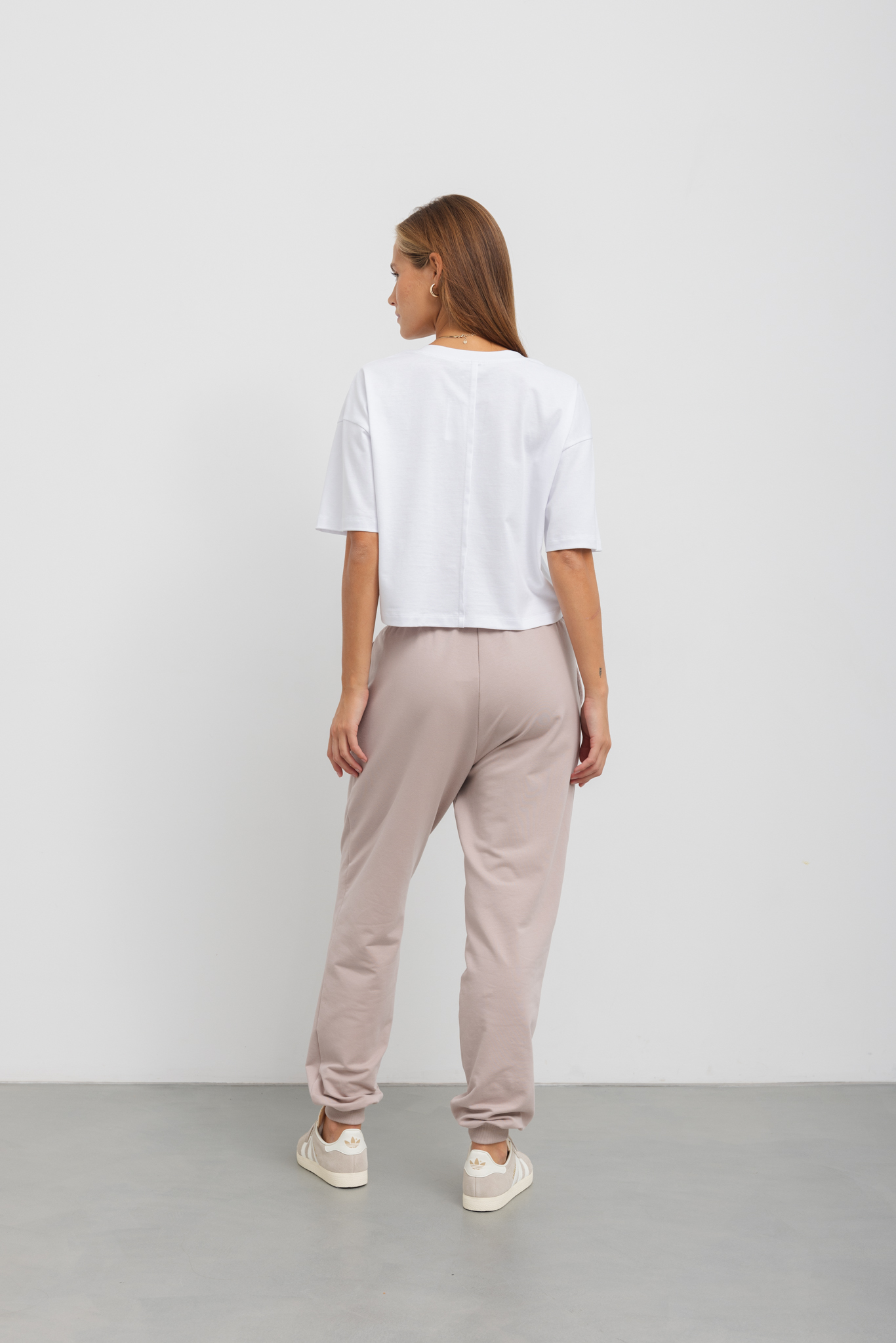 The waistband of the pants has a wide and comfortable ribbing that fits perfectly around the waist without tightness. You can wear them any way you like: high, on the waist or the hips. Elastic ribbing at the waist makes the pants easy to put on.