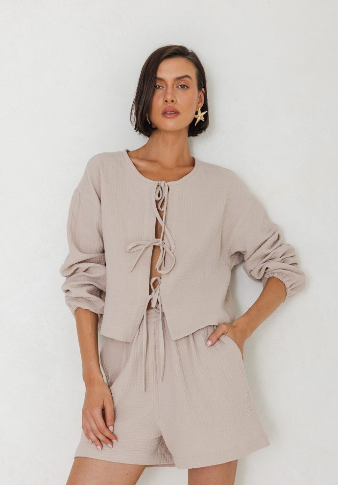 Cora is a modern interpretation of the classic shirt – short, oversized, with bold details. The shirt has a beautiful sand color that gives it a unique character.