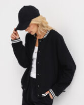 The bomber can be worn with comfortable, sporty styles – with leggings or joggers. However, its natural habitat is urban, casual looks. It goes perfectly with your favourite jeans and trainers. It will also work with a circle skirt or a thicker pleated or pencil skirt. You can also layer it over a dress – as a jacket.