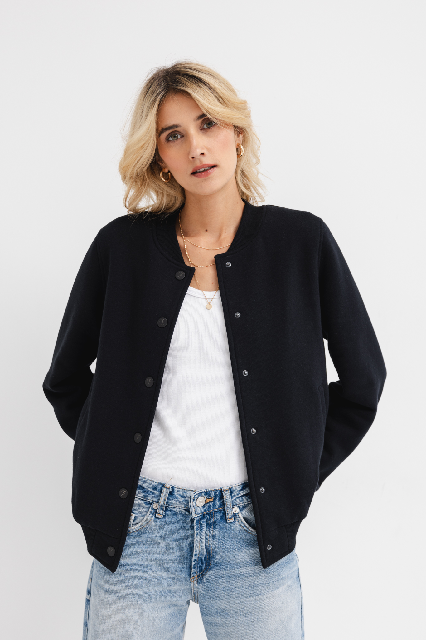 The Kim bomber jacket is a perfect compromise between a sweatshirt, a jacket and a blazer.