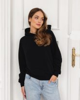 The Mila hoodie is made of a combed cotton sweatshirt knit, which means it has a pleasant fleece inside. It gives you a feeling of cosiness and softness.