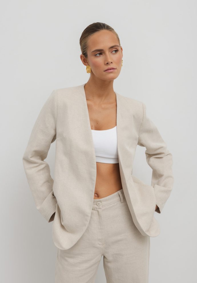 The Opium blazer is designed and made in Poland of a harmonious blend of cotton and linen. This blend ensures comfort that lasts for many seasons.