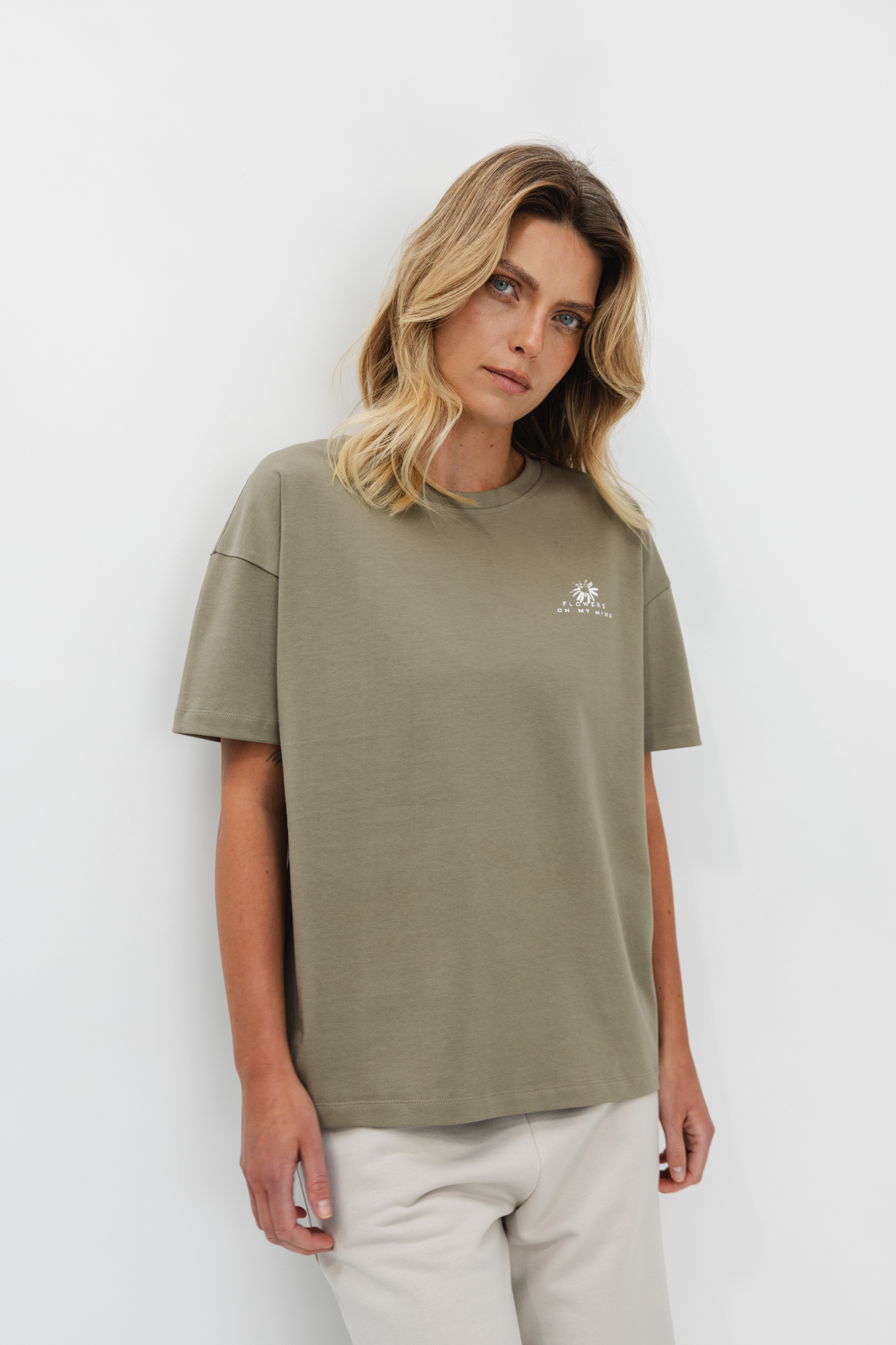 Composition: 100% cotton Model is 178 cm tall and is wearing size one size. Size: one size Colour: olive Care: the product is machine washable at 30 degrees. Do not iron after the print, we recommend washing in liquid for colours. Dimension error limit +- 2 cm Dimensions in cm: